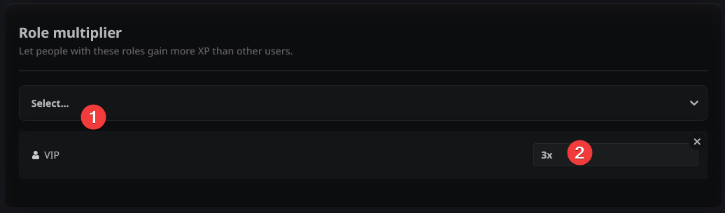 Want to reward your Nitro Boosters or loyal staff? Select a role (1) and set an XP multiplier (2) so they level up faster than others.
