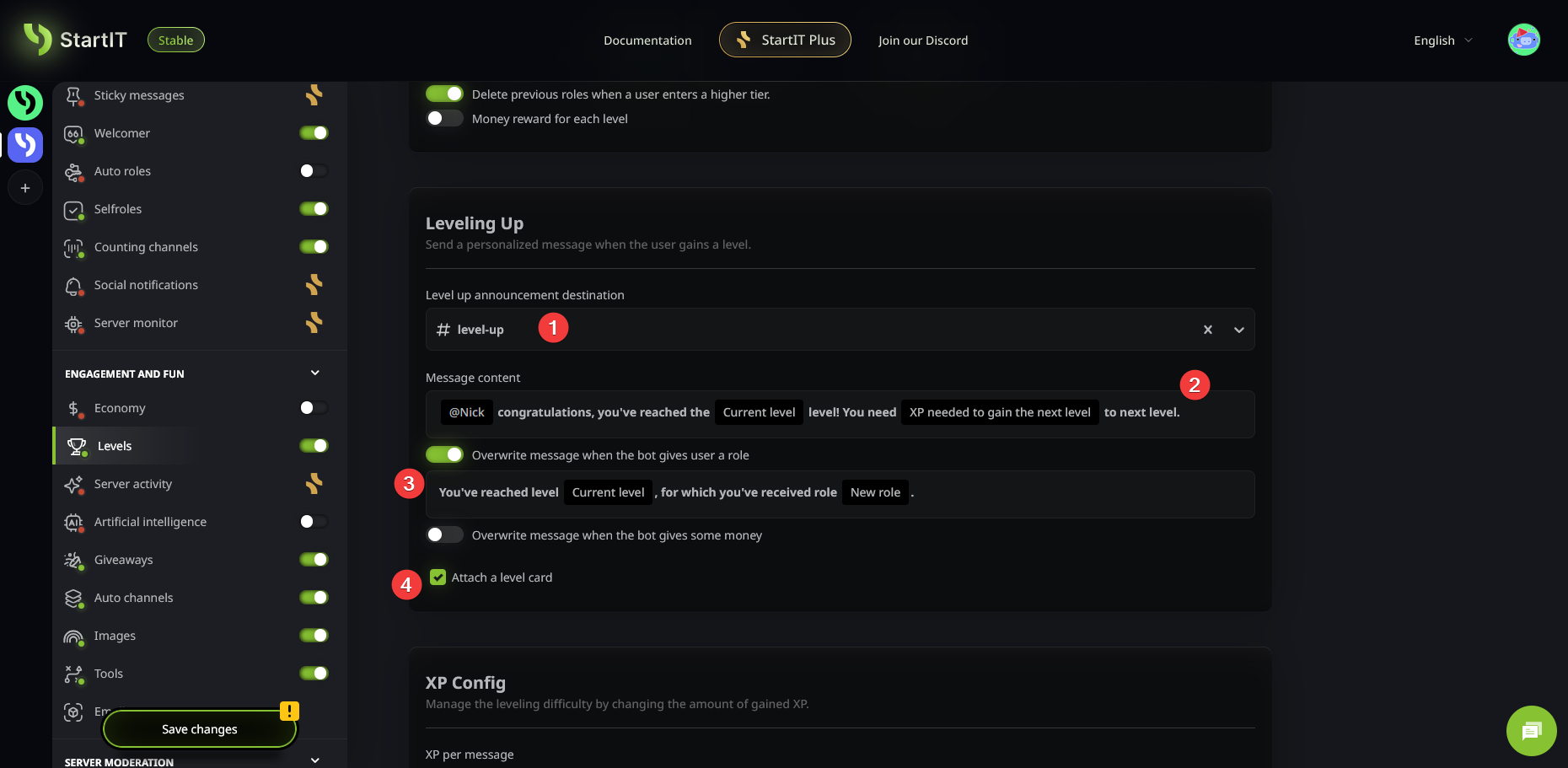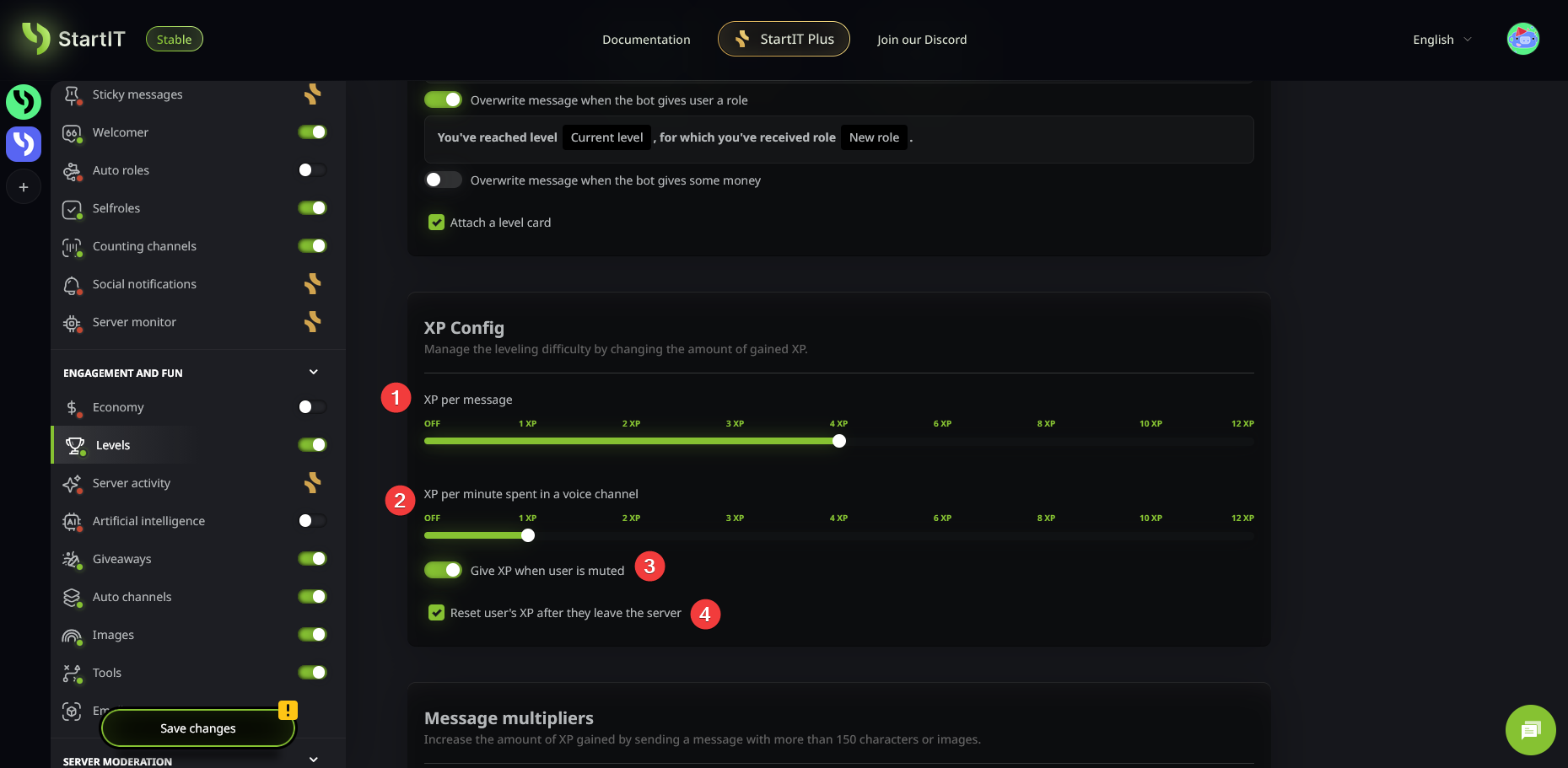 - Choose whether to completely wipe the XP of users who leave the server (4).