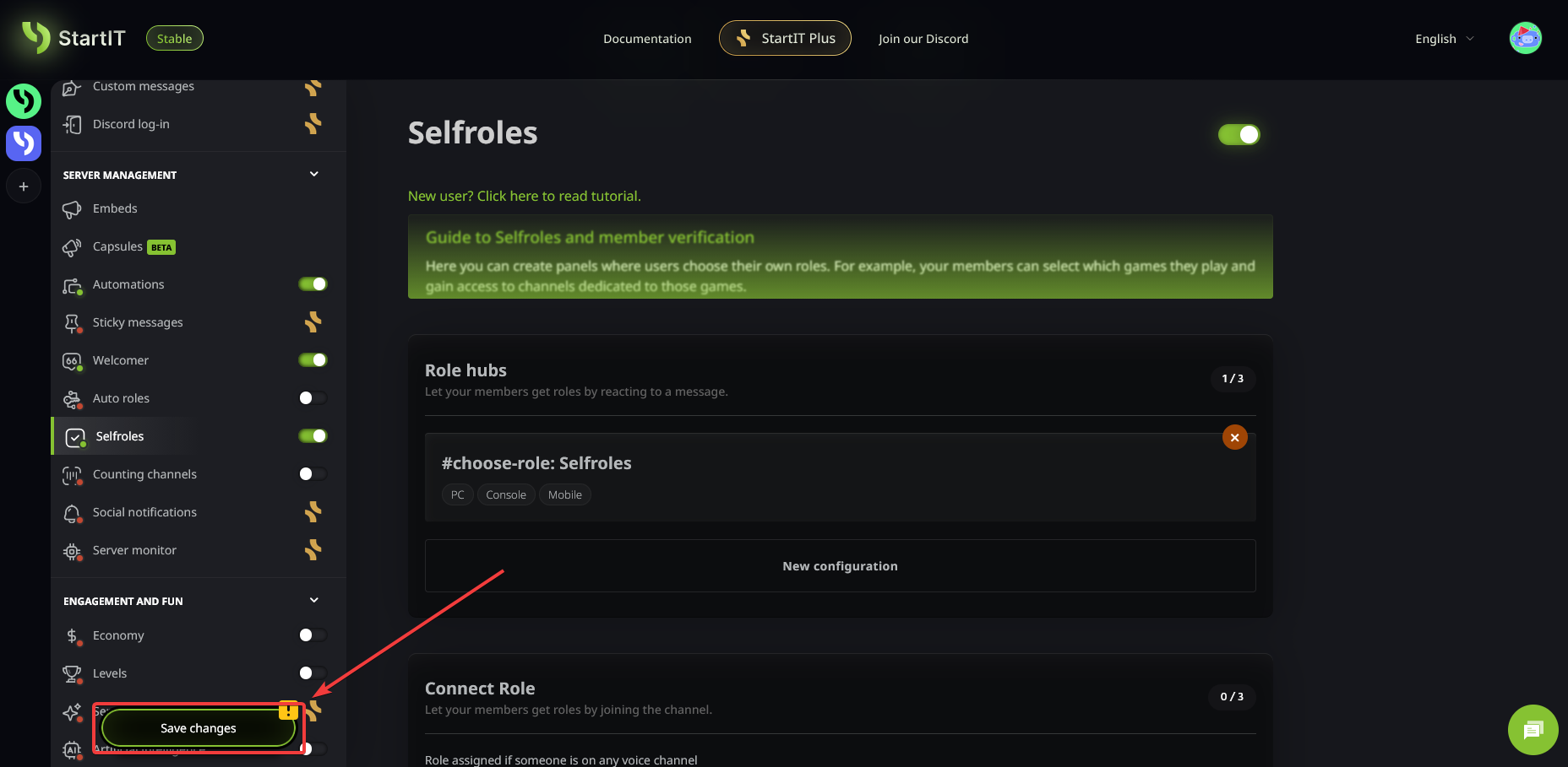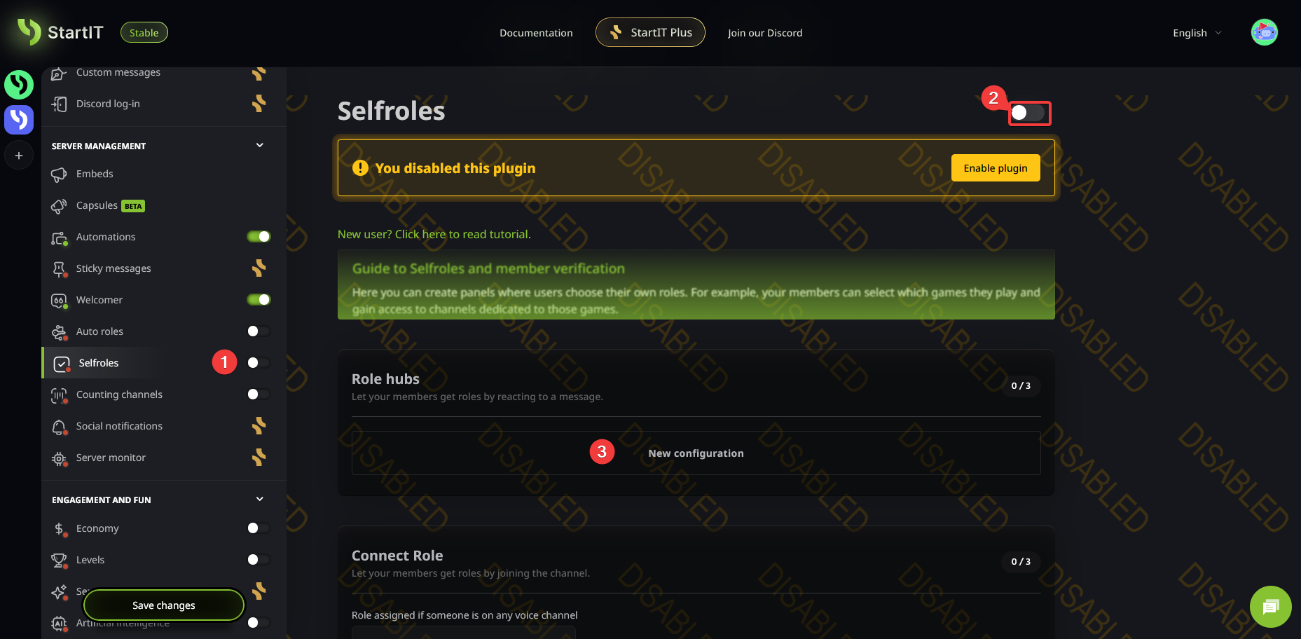 - Ensure the Selfroles plugin is actually toggled to "On."