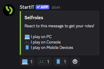 Are you ready to start your first reaction role? Add StartIT bot now and make your community more organized!